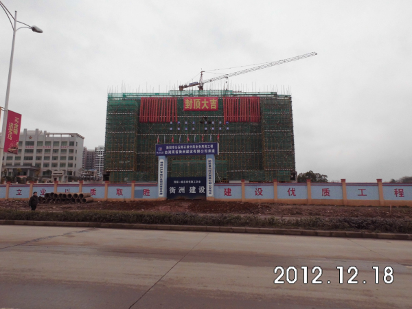 2012年12月18日上午,伴隨著最后一方混凝土的澆筑到位,在業(yè)主、監(jiān)理及項(xiàng)目部領(lǐng)導(dǎo)的見(jiàn)證下,由我司承建的“衡陽(yáng)市公安局石鼓分局業(yè)務(wù)用房工程”正式完成主體結(jié)構(gòu)的封頂。