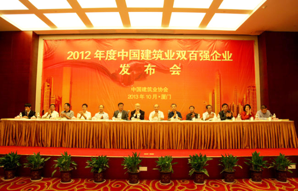 10月17日,中建協(xié)在廈門召開發(fā)布會(huì),向2012年度中國(guó)建筑業(yè)雙百?gòu)?qiáng)企業(yè)頒發(fā)牌證,同時(shí)發(fā)布《2012年度中國(guó)建筑業(yè)雙百?gòu)?qiáng)企業(yè)研究報(bào)告》。中建協(xié)副會(huì)長(zhǎng)徐義屏、副會(huì)長(zhǎng)兼秘書長(zhǎng)吳濤出席會(huì)議,副秘書長(zhǎng)趙峰主持會(huì)議。