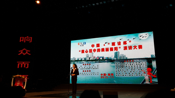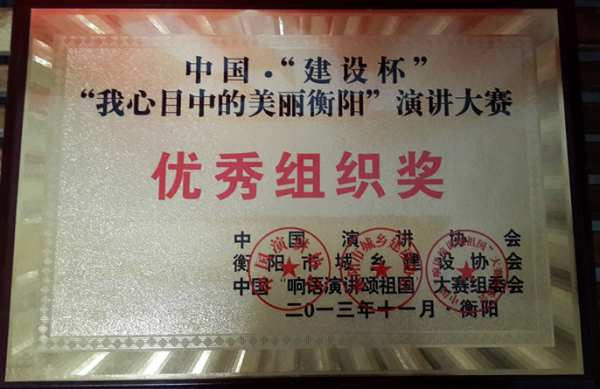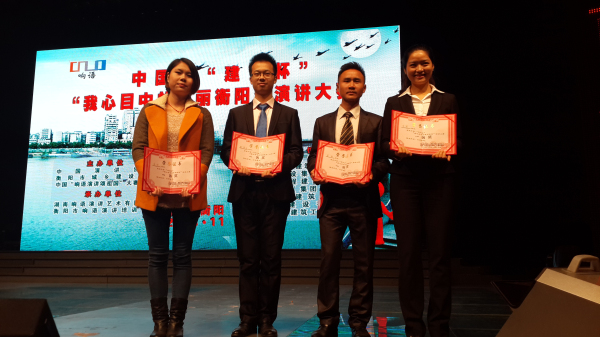 本次大賽是為了宣傳貫徹黨的十八大精神,呼應(yīng)2014年將在長(zhǎng)沙舉辦的中國(guó)•“我心目中的理想社區(qū)”全國(guó)演講大賽,推進(jìn)美麗衡陽(yáng)建設(shè),以演講的正能量為實(shí)現(xiàn)“中國(guó)夢(mèng)”提供鏗鏘發(fā)聲的舞臺(tái)。經(jīng)中國(guó)演講協(xié)會(huì)、市城鄉(xiāng)建設(shè)協(xié)會(huì)、中國(guó)“響語(yǔ)演講頌祖國(guó)”大賽組委會(huì)研究,決定在全市范圍內(nèi)舉辦中國(guó)“建設(shè)杯”•“我心目中的美麗衡陽(yáng)”演講大賽。經(jīng)過(guò)半年的緊張籌備,通過(guò)100余名演講選手參賽海選、51名演講選手復(fù)賽,最終有26名種子選手站在了演講決賽的舞臺(tái)。我司謝夢(mèng)陽(yáng)、唐霞、李瑩、曾勝四人演講《因?qū)W⒍绕稹窐s獲一等獎(jiǎng),謝夢(mèng)陽(yáng)、唐霞的個(gè)人演講分獲二、三等獎(jiǎng)。公司代表隊(duì)榮獲中國(guó)•建設(shè)杯•“我心目中的美麗衡陽(yáng)”演講賽優(yōu)秀組織獎(jiǎng)。