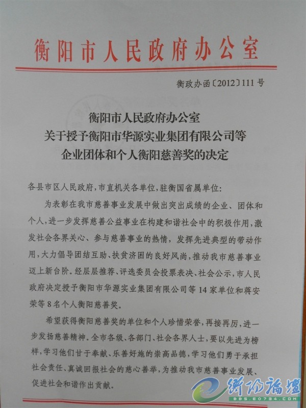我司榮獲首屆衡陽慈善獎(jiǎng)