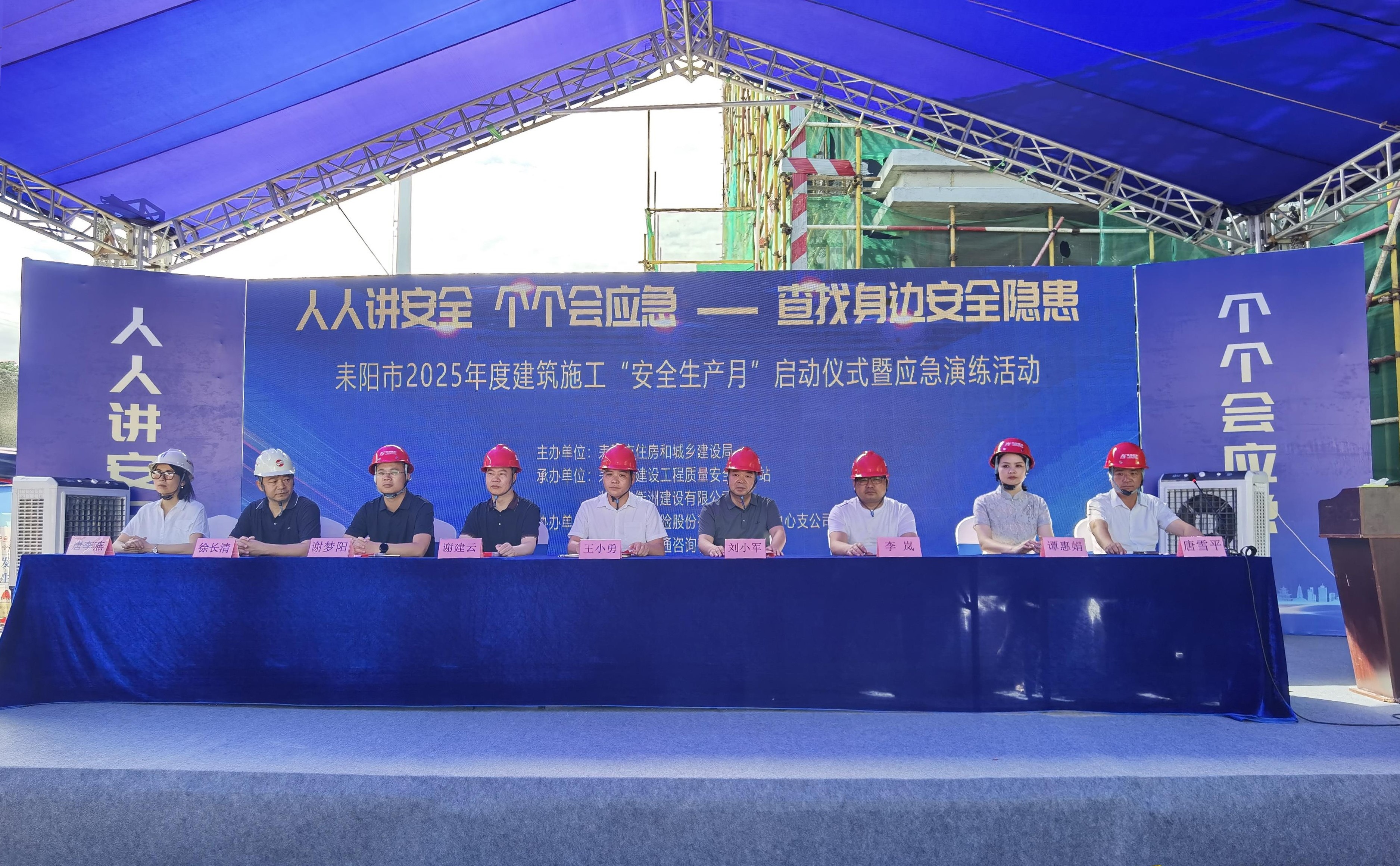 6 月17日,以 “人人講安全 個(gè)個(gè)會應(yīng)急 —— 查找身邊安全隱患” 為主題的耒陽市 2025 年度建筑施工安全生產(chǎn)月活動啟動儀式暨應(yīng)急演練活動,在湖南省衡洲建設(shè)有限公司承建的耒陽市 “二所合一”(看守所、拘留所) 建設(shè)項(xiàng)目現(xiàn)場成功舉辦。耒陽市住房和城鄉(xiāng)建設(shè)局總工程師王小勇,市住建局、質(zhì)安站等職能部門領(lǐng)導(dǎo),以及全市300余名在建工地建設(shè)、施工、監(jiān)理單位項(xiàng)目負(fù)責(zé)人齊聚一堂,共繪安全生產(chǎn)藍(lán)圖。作為本次活動的承辦方,衡洲建設(shè)充分發(fā)揮企業(yè)擔(dān)當(dāng),緊扣活動主題,以高標(biāo)準(zhǔn)、嚴(yán)要求精心籌備每一個(gè)環(huán)節(jié),全方位保障活動高效有序開展?;顒娱_場,全體人員通過觀看安全生產(chǎn)主題宣傳片與警示片,敲響安全警鐘。副總經(jīng)理謝夢陽代表公司致辭,他表示,衡洲建設(shè)始終將安全生產(chǎn)視為企業(yè)發(fā)展的生命線,未來將持續(xù)加大安全投入,強(qiáng)化員工安全培訓(xùn),以更高標(biāo)準(zhǔn)落實(shí)安全生產(chǎn)責(zé)任,為耒陽市建筑行業(yè)安全生產(chǎn)樹立標(biāo)桿。