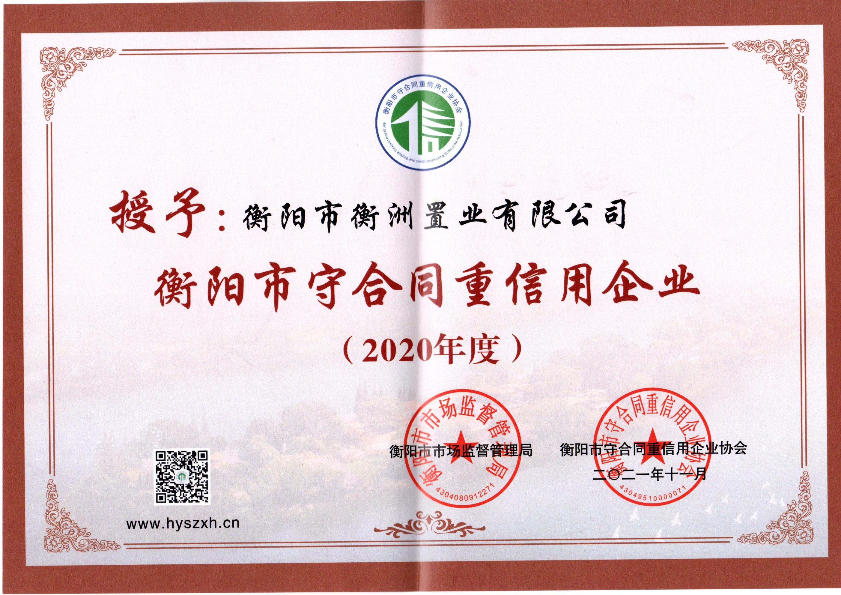 衡陽市衡洲置業(yè)有限公司連續(xù)十一年榮獲衡陽市守合同重信用企業(yè)。
