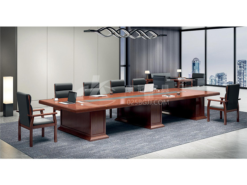 實木會議桌一體式矩形行政延續(xù)了該系列特征,既是電源滑蓋又是置物托盤,利用立體空間增加功能性;
