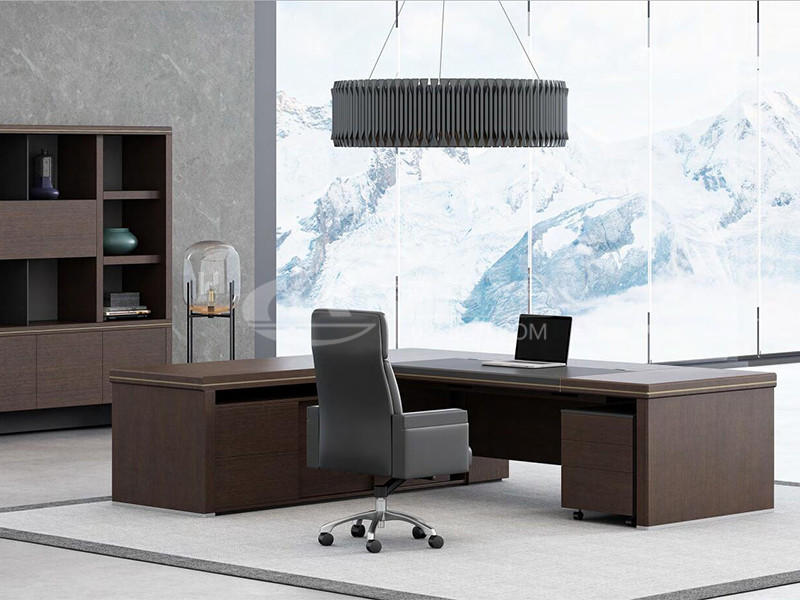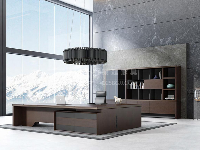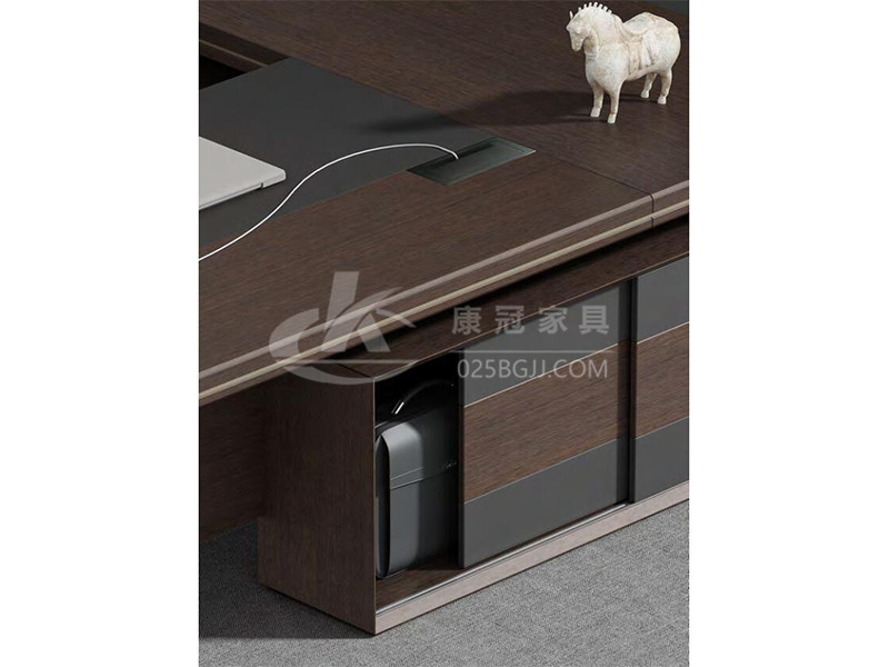 此款老板桌以現(xiàn)代風格結合傳統(tǒng)厚重的設計體現(xiàn)了現(xiàn)代、時尚、實用,但又有朝氣息,領資系列方正的外觀給人以穩(wěn)重大氣感,側柜有效結合收納與走線功能;