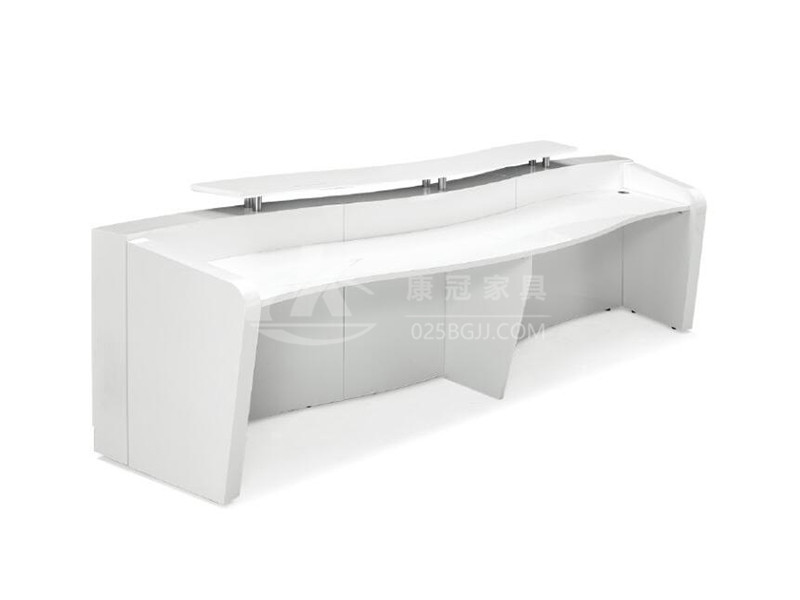 除了接待服務(wù)外,還擔(dān)負(fù)著很多附屬功能,如企業(yè)形象、服務(wù)態(tài)度都將作為第一反應(yīng)記錄在員工與客戶的記憶中。作為企業(yè)的“玄關(guān)”,在形象展示上有著無可厚非的重要性??裳由鞛椤爸甘尽⒁龑?dǎo)”之意;在為人與人之間的交流溝通架起共性的橋梁同時,其真正目的是指示、引導(dǎo)人們在規(guī)劃空間內(nèi)的進一步交流與溝通。同時在企業(yè)形象與產(chǎn)品展示功能上亦扮演著重要角色。板式前臺,四邊倒角幾何,采用矩形管焊接結(jié)構(gòu),L型鋼件固定,內(nèi)置隱藏LED燈組,人性化設(shè)計,外觀大氣簡潔,方便接待人員與客戶之間的交流溝通。